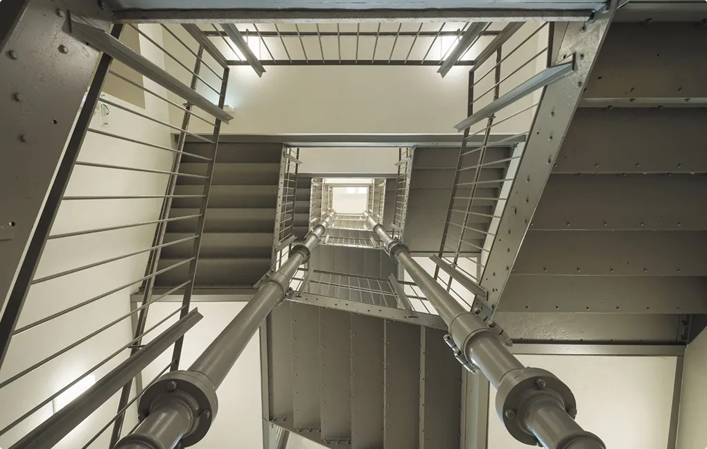 Gleichzeitig galt es, den wirtschaftlichen und insbesondere den denkmalpflegerischen Vorgaben gerecht zu werden. Grundlegend hierfür war, alle Holzbalkendecken unter Berücksichtigung der im Bestand vorhandenen Verstärkungen und früheren Instandsetzungen, sowie der vorhandenen Stützensenkung von bis zu 30 cm zu erhalten und für die Aufnahme einer Verkehrslast von 300 kg/m² (Nordseite) bzw. von 500 kg/m² (Südseite) zu ertüchtigen. Die ingenieurtechnische Herausforderung lag in der Rückverformung der Stützensenkung und der Nutzlasterhöhung. Während der unterschiedlichen früheren Nutzungen, mit teilweise schweren Werkzeug- und Webemaschinen, wurden die Deckentragwerke bereichsweise deutlich überbeansprucht. Das Ingenieurbüro DR. SCHÜTZ INGENIEURE erarbeitete ein stufenweises statisches Rückverformungskonzept unter der Prämisse des größtmöglichen Substanzerhalts für ca. 4.000 m² Holzbalkendecken. Dadurch wurden diese wieder in die ursprüngliche Lage gebracht und die zulässige Nutzlast der Decken erhöht. Eine planungsbegleitende Kostenanalyse alternativer Instandsetzungskonzepte hat zudem gezeigt, dass mit dem Erhalt und der denkmalgerechten Sanierung der bestehenden Holzbalkendecken auch die wirtschaftlichste Lösung für die künftige Nutzung gewählt wurde.So konnten gegenüber einem Deckenaustausch mit Hoesch-Additiv-Decke (Stahlbetondecke) oder Brettstapeldecke Instandsetzungskosten von über 200.000 € eingespart werden.