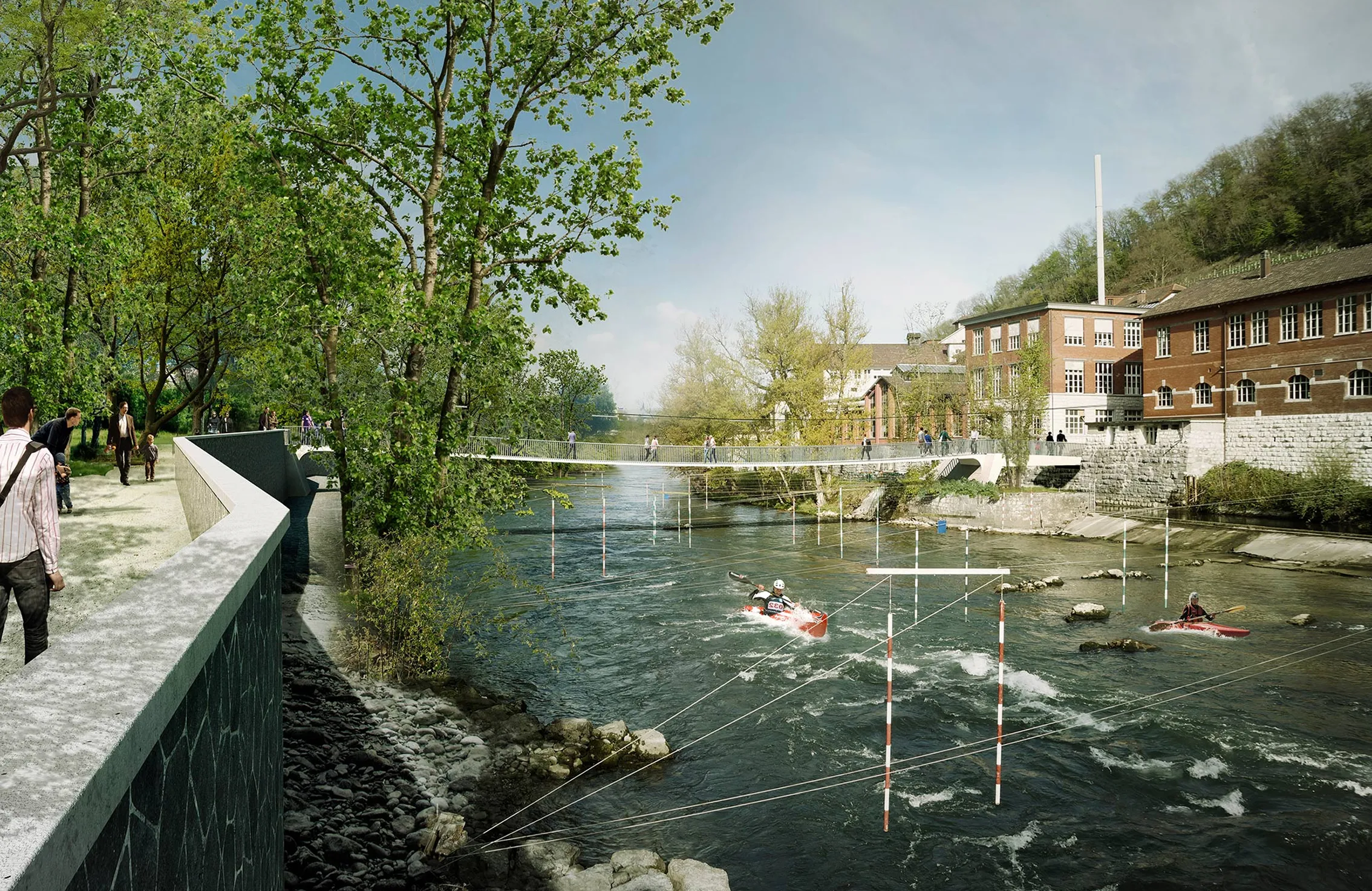 Die Geh- und Radwegbrücke (mit Schwerlastabschnitt für das Kraftwerk) über die Limmat im Landschaftsschutzgebiet verbindet in sanftem Schwung die Weinbergterrassen der Goldwand Ennetbaden mit den Quellen des Bäderquartiers Baden. Das Spannband als Verbundquerschnitt generiert eine hohe Steifigkeit und Robustheit. Durch die Vorspannung der Betonplatte werden die Zugspannungen im Beton minimiert und die Dauerhaftigkeit erhöht. Die nachträglich kontrollierbaren Spannglieder erlauben auch ein Nachspannen. Der Mättelisteg wird von der Spannung zwischen der massigen Industriearchitektur des Oederlinareals mit Wasserkraftwerk einerseits und dem fließenden Landschaftsraum des Limmattals andererseits geprägt.