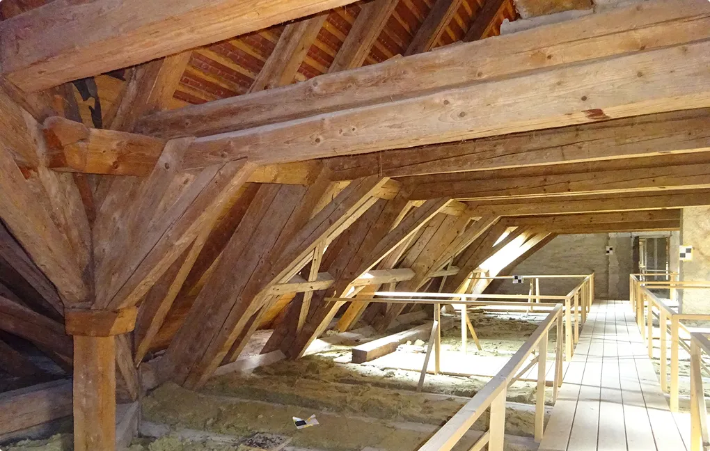 Die geplante Generalsanierung umfasst das komplette Klostergebäude mit Ausnahme der Klosterkirche. Es soll die Bausubstanz instandgesetzt und statische Mängel sowie die vorhandenen Defizite aus brandschutztechnischer Sicht behoben werden. Zudem ist eine umfassende Modernisierung in Hinblick auf die Barrierefreiheit und die Gebäudetechnik geplant. Als Grundlage für die Generalsanierung wurde von DR. SCHÜTZ INGENIEURE zunächst eine umfassende Bestands- und Schadenserfassung durchgeführt. Anschließend erfolgte eine Nachrechnung des Bestands an ausgewählten, repräsentativen Gebäudeteilen. Für die Nachrechnung der räumlichen Dachtragwerke über den Risaliten wurden diese mit Hilfe eines 3D-Laserscanners aufgenommen. Im Nachgang wurde aus diesen Aufnahmen ein dreidimensionales Stabtragwerk entwickelt. Da die vorhandenen Holzbalkendecken mit ihren großen Spannweiten (bis ca. 10 m) als schwingungsanfällig einzuschätzen sind und zu große Erschütterungen vor allem für die Verkehrssicherheit der vorhandenen Putzdecken bedenklich sind, wurden an ausgewählten Decken Erschütterungsmessungen durchgeführt und daraus die erforderlichen Sanierungsmaßnahmen abgeleitet. Im Zuge der Entwurfsplanung werden 2020/2021 alle erforderlichen statischen Sanierungsmaßnahmen geplant und mit den restlichen Planungsbeteiligten zu einem umfassenden Entwurfskonzept zusammengefasst.