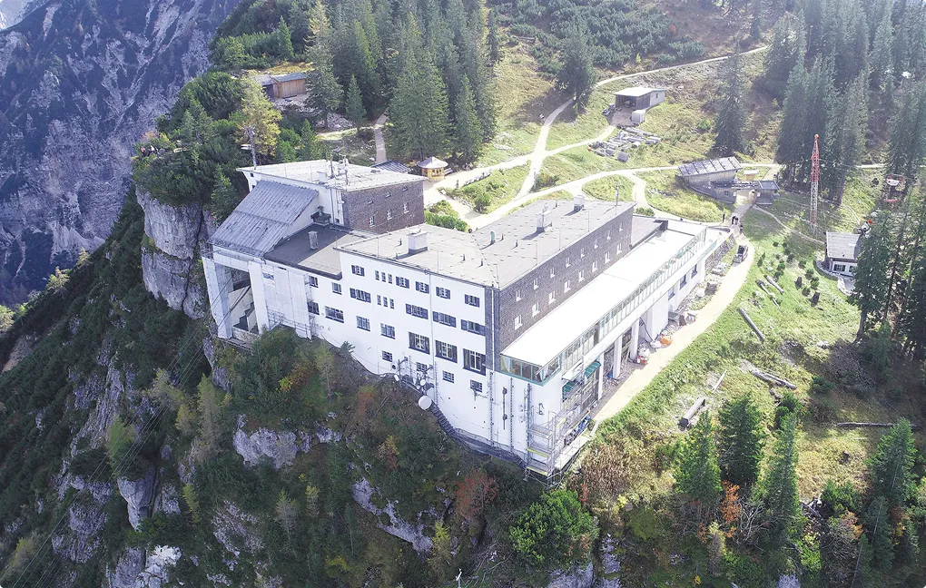 Das Zeitfenster war auf Grund der langen Winterperiode stark eingeschränkt und wurde dadurch erschwert, dass die Sanierung aus wirtschaftlichen Gründen bei laufenden Betrieb erfolgen musste. Neben den erforderlichen Betoninstandsetzungsarbeiten war auch eine Verbesserung der Dauerhaftigkeit und der Erhalt der bauzeitlichen Schalbrettstruktur gefordert. Der Materialtransport konnte ausschließlich über Helikopter erfolgen. Die Instandsetzungsarbeiten erforderten neben einer ingenieurmäßigen Konzeptentwicklung auch die logistische Planung der Umsetzung. Außerdem war ein hohes Maß an Kreativität bei der Entwicklung der Detaillösungen sowie der Auswahl verschiedener Arbeitsverfahren erforderlich. Der Hotelbetrieb wurde 2014 wegen dringend notwendiger Sanierungsmaßnahmen eingestellt. Das Restaurant, die Außenfassaden des ehemaligen Hotels und die Bergstation wurden, wie die Stützen der Seilbahn, umfangreich saniert. Neben einer Fassaden- und Fensterrestauration erfolgte auch die Umsetzung eines Brandschutzkonzeptes in der Bergstation. Die Sanierungsmaßnahme erfolgte teils unter sehr schwierigen Bedingungen (Einrüstung des Gebäudes am steilen Nordhang) und unter Beachtung der anspruchsvollen Denkmalschutzvorgaben.