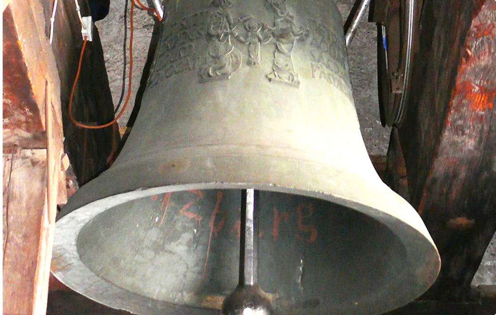 In der Glockenstube befindet sich ein dreifeldiger und zweistöckiger Holzglockenstuhl für die sieben Glocken. Die Glocken vier bis sechs hatten keinen ausreichenden Resonanzabstand zur Turmeigenfrequenz, sodass die Erschütterungen um 125 % über dem Anhaltswert der DIN 4150, Teil 3 lagen. Die Erschütterungen wurden durch eine Absenkung der Läutewinkel auf die Werte der DIN 4178 und durch schlanke Joche für die Glocken fünf und sechs reduziert. Dadurch wurden auch die Belastungen auch auf den mittelalterlichen Turm geringer.