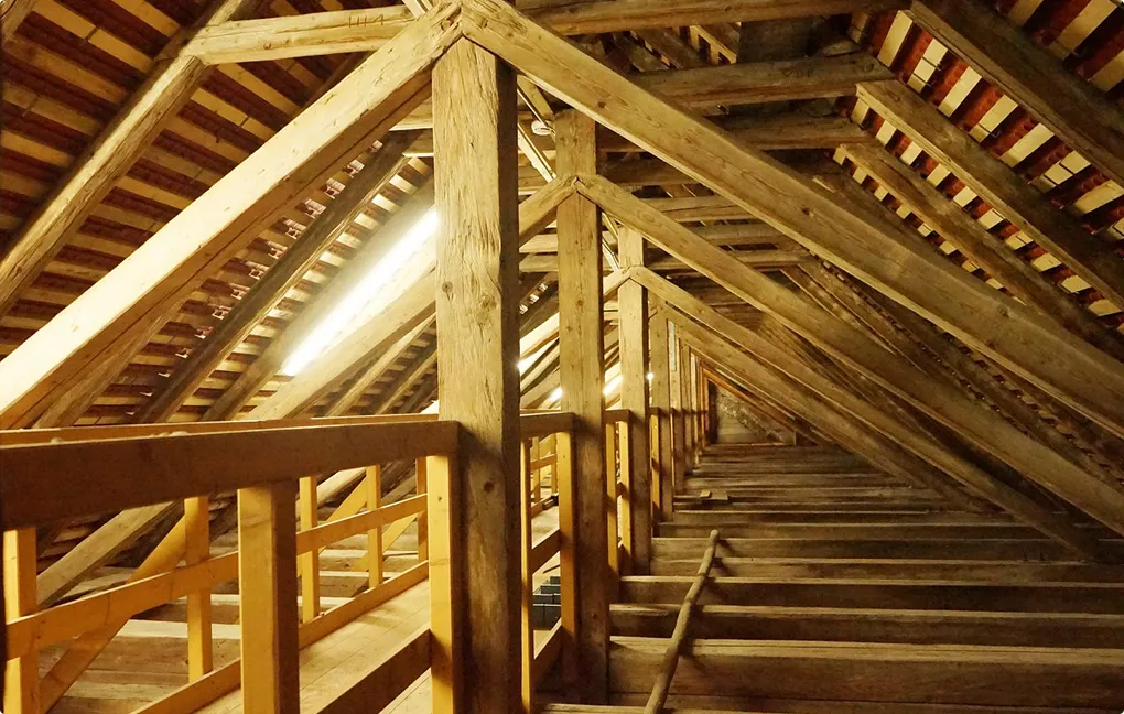 Die historischen Tragkonstruktionen wurden denkmalgerecht überarbeitet und ausgerichtet. Die horizontalen Lasten wurden über einen Verband direkt in den Turm eingeleitet und die Holzkonstruktionen erhält somit nur noch Vertikallasten. So konnte auch die Bauphase 1927, die wohl im Zusammenhang mit der Erhebung zur Erzabtei steht, vollständig erhalten werden. Mit der Aktivierung des Turmmauerwerks für den Abtrag der horizontalen Lasten des Geläutes konnte eine besonders wirtschaftliche Lösung mit größtmöglichem Substanzerhalt gefunden werden. Alternative Lösungsansätze eines anderen Planers hätten bei deutlich höheren Kosten (ca. 200.000 € für ein zusätzliches Stahltragwerk) einen weitgehenden Ausbau der erhaltenswerten Holzkonstruktion bedeutet. Durchgeführte Nachmessungen bestätigten den Erfolg der Maßnahme.