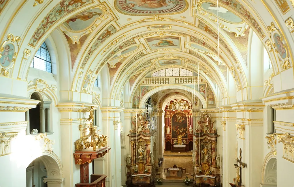 Die heutige Stiftskirche St. Peter geht im Kern auf einen Bau zurück, der 1125–1143 erbaut und 1147 geweiht wurde. Der mächtige Kirchturm, der um 1400 romanisierend erhöht wurde, stammt im Kern aus dem 9. Jahrhundert. Neben einer historischen Unterkonstruktion wurde 1927 eine zusätzliche hölzerne Tragkonstruktion für die gleich alten Glocken eingebaut.